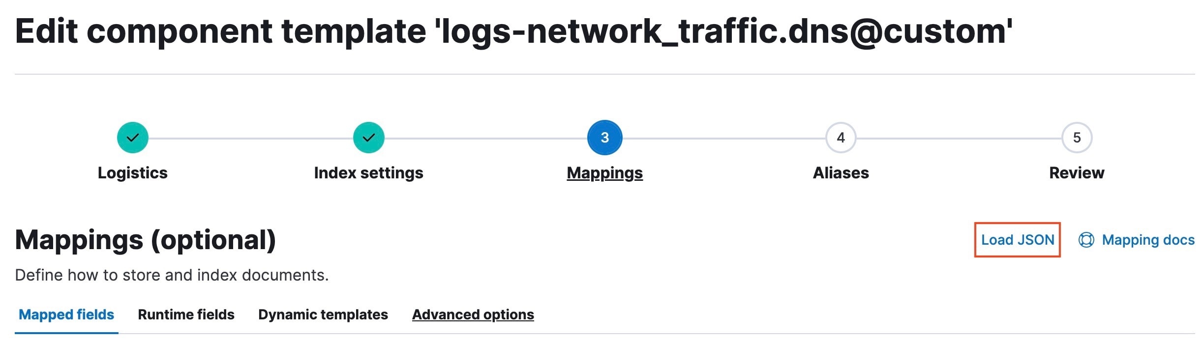 }You can do this under Stack Management > Index Management > Component Templates. Templates that can be edited to add custom components will be marked with a @custom suffix. Edit the @custom component template for your Elastic beat by pasting the above JSON blob in the Load JSON flyout.