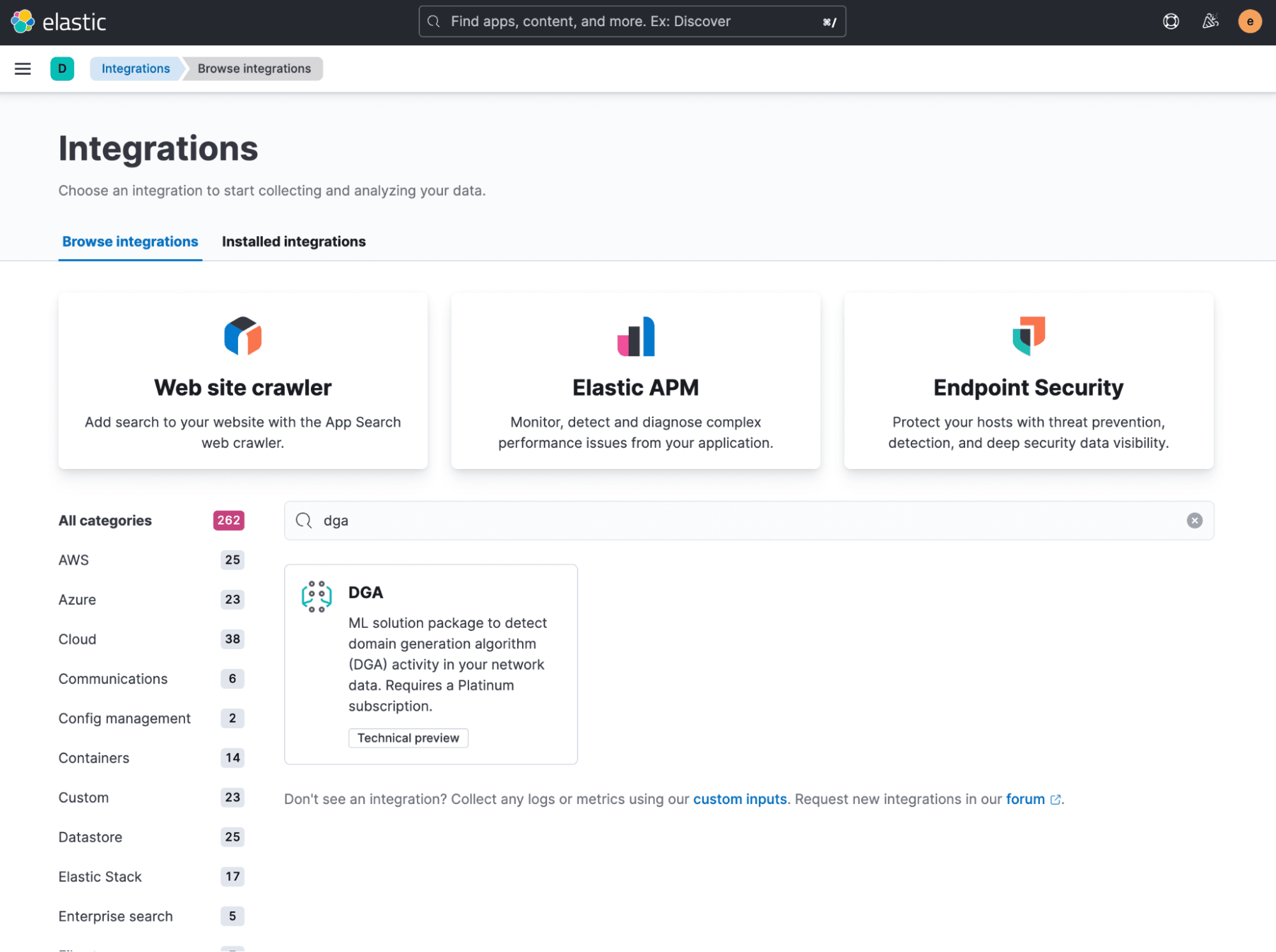 Searching for a way to help protect your network from potential domain generation algorithm (DGA) attacks? Look no further — a DGA detection package is now available in the Integrations app in Kibana.