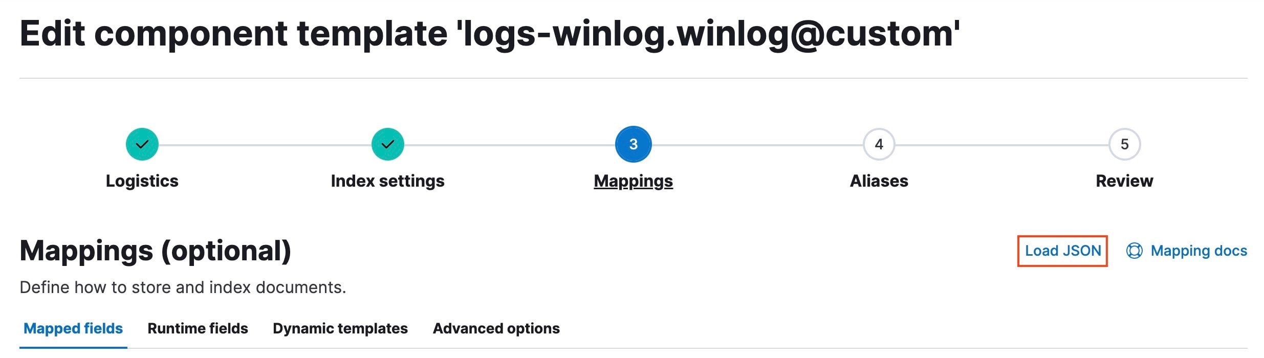 }You can do this under Stack Management > Index Management > Component Templates. Templates that can be edited to add custom components will be marked with a @custom suffix. Edit the @custom component template for your Elastic beat by pasting the above JSON blob in the Load JSON flyout.