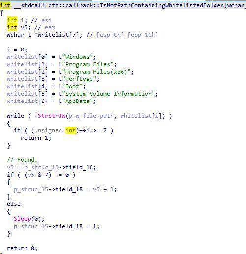 Similar to different ransomware families, HERMETICWIPER avoids specific critical folders and files during the wiping process. This ensures the machine is still operable and will not impact the disk wiping/file corrupting process at a later stage.