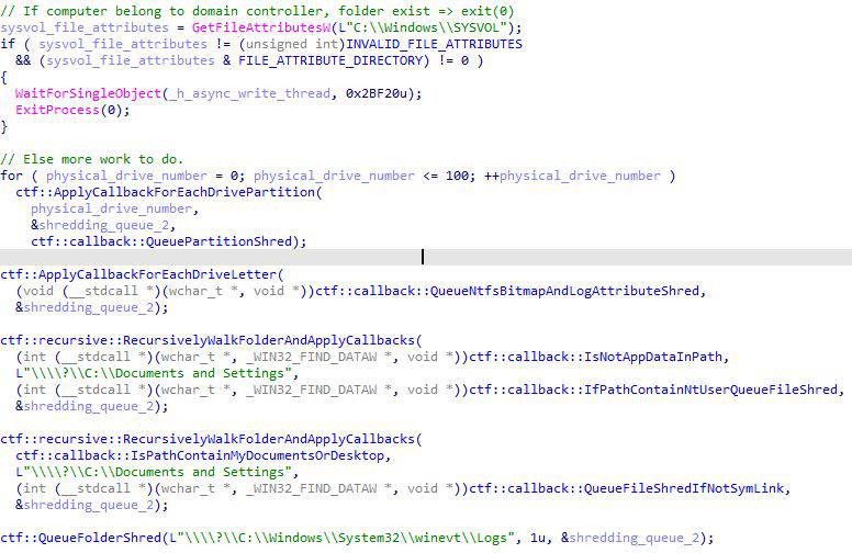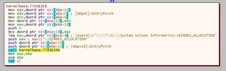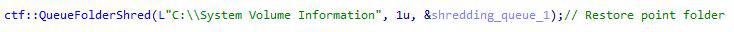 Another interesting technique observed when targeted files are queued for wiping is how they are accessed by concatenating the value ::$INDEX_ALLOCATION to a filename. This documented NTFS trick is an additional method to bypass access-control list (ACL) permissions on targeted files to provide more reliability when accessing these files.