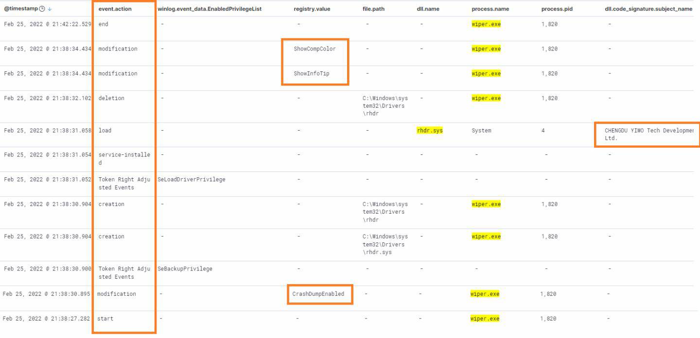 On February 23, 2022, the ESET threat research team disclosed a series of findings pertaining to a Data Wiper malware campaign, impacting hundreds of systems across Ukraine, named HERMETICWIPER. Elastic previously published research on Operation Bleeding Bear, a campaign targeted towards Ukrainian assets with similar destructive intentions.